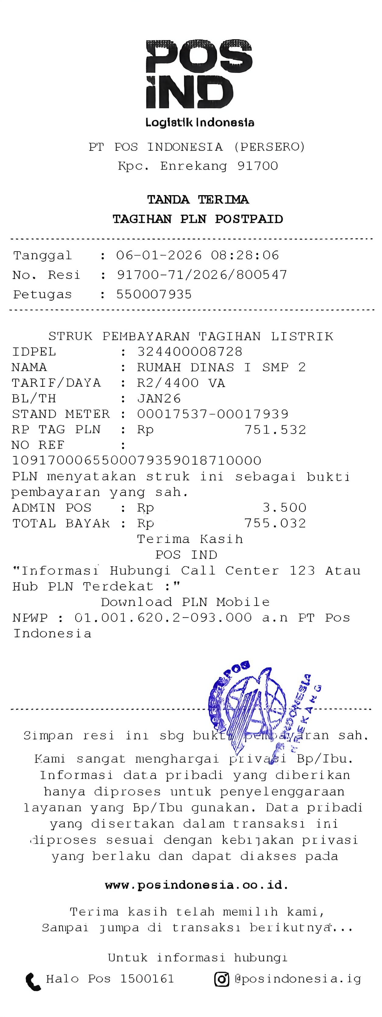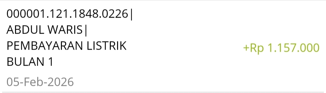 | 28 | 05-02-2026 | Terima Uang Listrik | Rp 1.157.000 | - | Rp 1.602.557 | |