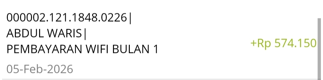 | 27 | 05-02-2026 | Terima Uang Wifi | Rp 574.150 | - | Rp 445.557 | |