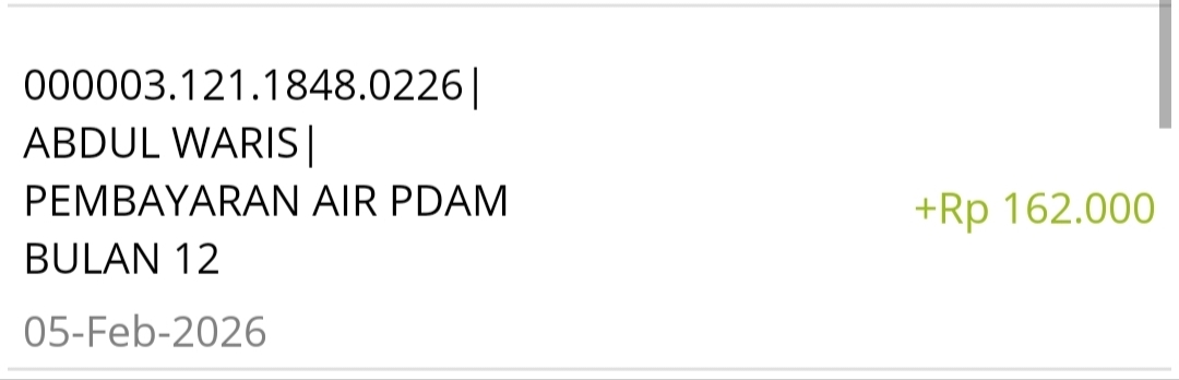 | 29 | 05-02-2026 | Terima Uang Air | Rp 162.000 | - | Rp 1.764.557 | |