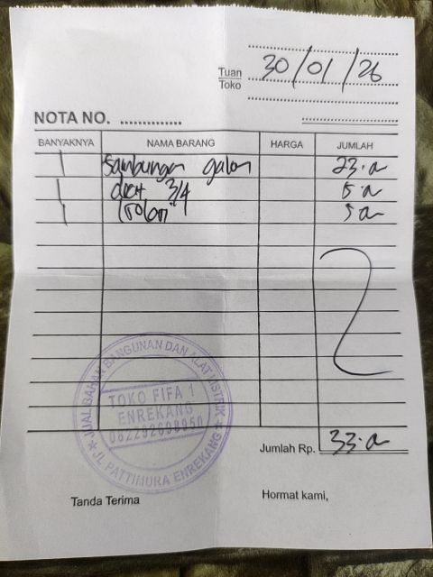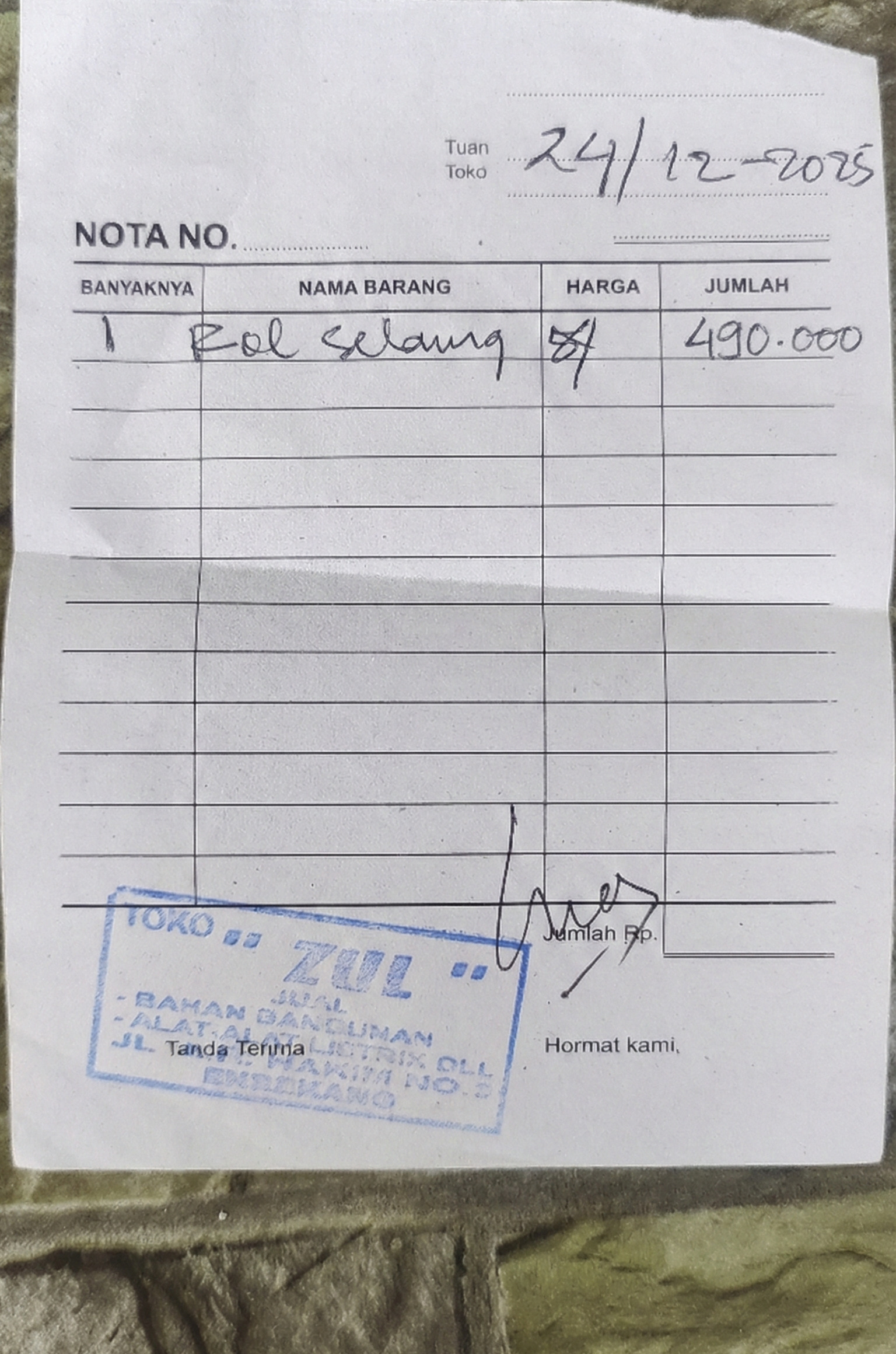 | 2 | 05-01-2026 | Beli selang 1 Roll | - | Rp 490.000 | Rp 3.313.569 | |