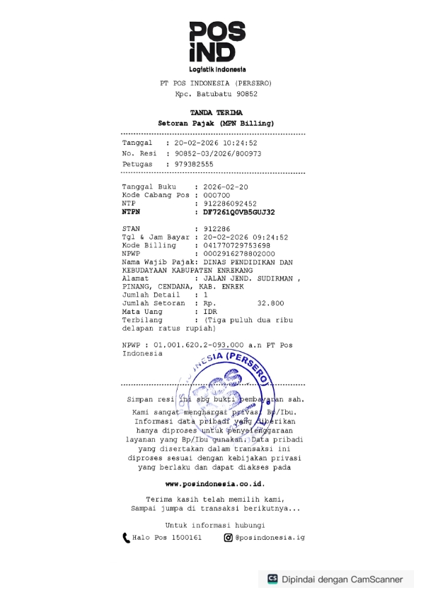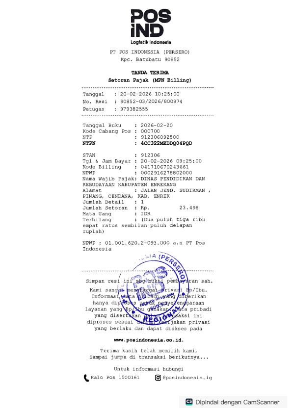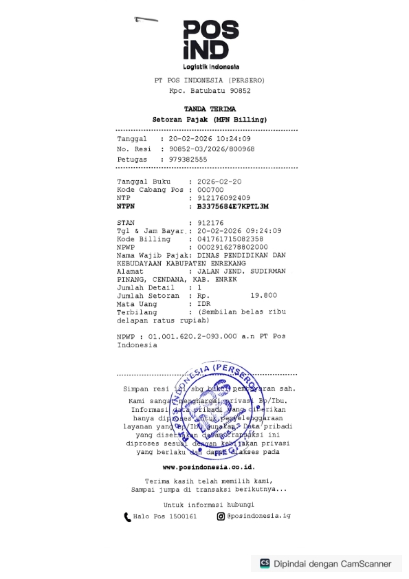 | 39 | 20-02-2026 | Bayar Pph 23 Atas Jasa Tukang Untuk Rehap Pagar Atas Nama Jailani Sudin | - | Rp 32.800 | Rp 1.068.459 | |
