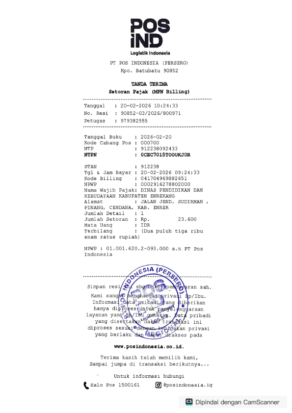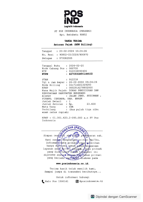 | 40 | 20-02-2026 | Bayar Pph 23 Atas Jasa Tukang Untuk Rehap Pagar Atas Nama Tirta Amiruddin Sapey | - | Rp 23.600 | Rp 1.044.859 | |