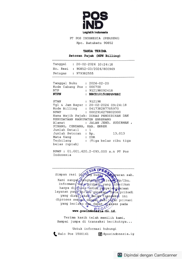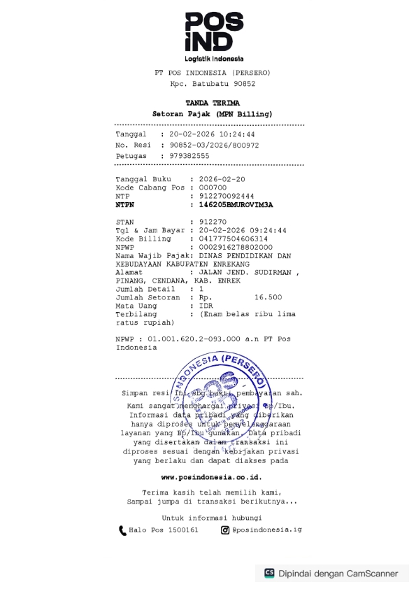 | 47 | 27-02-2026 | Bayar Scan LPJ bos Tahap 2 | - | Rp 350.000 | Rp 211.946 | |