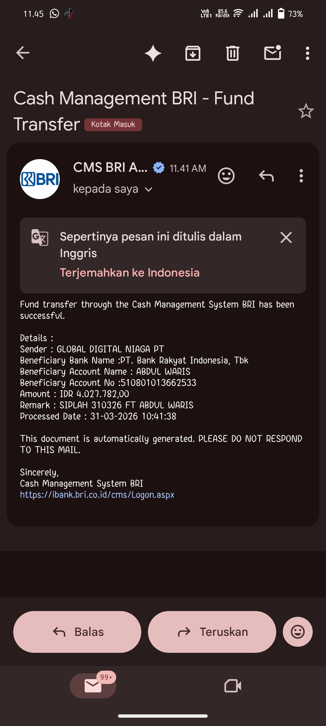 | 66 | 06-04-2026 | Terima uang ATK dari Pak sabir | Rp 4.535.000 | - | Rp 4.753.490 | |