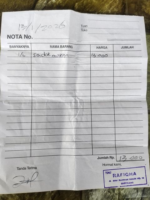 | 15 | 13-01-2026 | Beli Sendok Makan | - | Rp 13.000 | Rp 817.407 | |