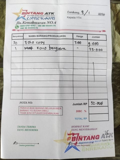 | 33 | 09-02-2026 | Bayar Foto Copy | - | Rp 10.000 | Rp 1.457.557 | |