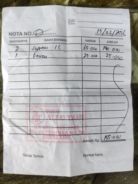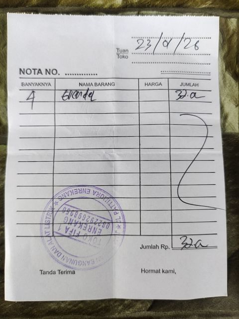 | 32 | 05-02-2026 | Beli Nozel inflator untuk compressor | - | Rp 100.000 | Rp 1.467.557 | |