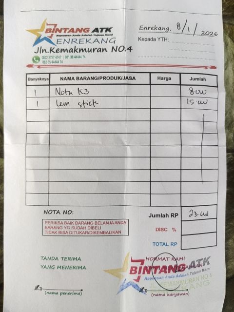 | 72 | 09-04-2026 | Beli Komsumsi untuk pengawas TKA 2 orang harga 25.000 | - | Rp 50.000 | Rp 1.486.490 | |