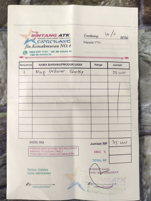 | 34 | 10-02-2026 | Beli Map oudner | - | Rp 35.000 | Rp 1.422.557 | |