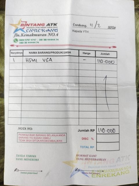 | 35 | 11-02-2026 | Beli HDMI VGA | - | Rp 110.000 | Rp 1.312.557 | |