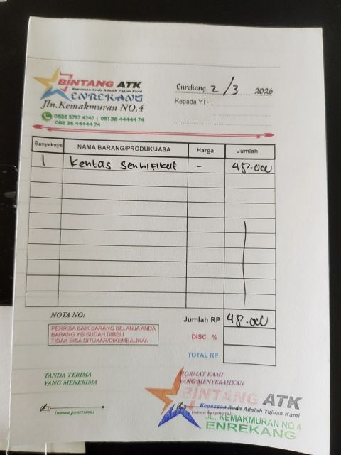 | 48 | 02-03-2026 | Beli Kertas Sertifikat | - | Rp 48.000 | Rp 163.946 | |
